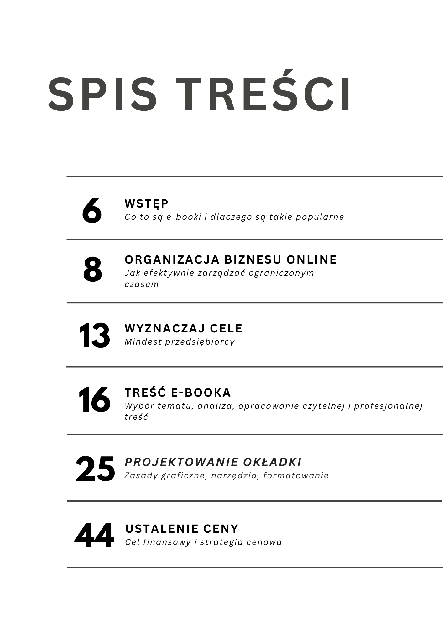 Marzysz o wydaniu własnego e-booka, ale nie wiesz, od czego zacząć? Ten produkt przeprowadzi Cię krok po kroku przez cały proces – od pomysłu, przez tworzenie, aż po skuteczną sprzedaż. Nie musisz martwić się o kwestie wydawnicze, wycenę czy formalności związane z działalnością gospodarczą – wszystko znajdziesz w tym przewodniku!