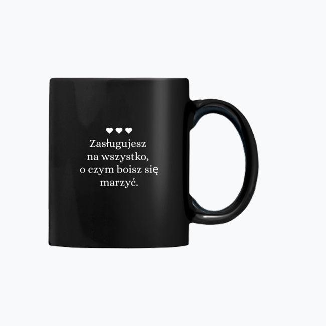 Kubek z tekstem, "który dodaje skrzydeł” – ceramiczny, 330 ml, idealny do kawy i herbaty